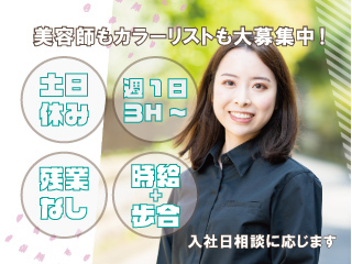 | 応募資格 | ■要美容師免許 ブランクのある方、未経験の方も丁寧な研修がありますので、安心してご応募下さい ※年齢不問 |